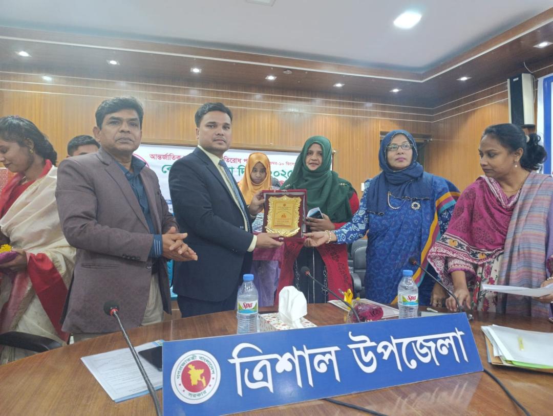 ময়মনসিংহের ত্রিশালে উপজেলা প্রশাসন ও মহিলা বিষযক অধিদপ্তরের আয়োজনে এবং জাতীয় মহিলা সংস্থা ও নারী শান্তি সহায়ক প্লাটফর্মের সহযোগিতায় আন্তর্জাতিক নারী নির্যাতন প্রতিরোধ পক্ষ ও বেগম রোকেয়া দিবস ২০২৫ পালন করা হয়েছে। এ লক্ষে মঙ্গলবার বিকালে উপজেলা পরিষদ প্রাঙ্গণ থেকে এক বর্ণাঢ্য র্যালি শুরু হয়ে পৌর শহরের প্রধান প্রধান সড়ক প্রদক্ষিণ শেষে পুনরায় উপজেলা পরিষদ চত্বরে গিয়ে শেষ হয় এবং উপজেলা পরিষদ হলরুমে উপজেলা নির্বাহী কর্মকর্তা আরাফাত সিদ্দিকীর সভাপতিত্বে ও উপজেলা মহিলা বিষয়ক কর্মকর্তা শামীমা সুলতানার সঞ্চালনায় আলোচনা সভায় এ সময় অন্যান্যদের মধ্যে উপস্থিত ছিলেন পৌর নির্বাহী কর্মকর্তা নওশীন আহমেদ, উপজেলা মাধ্যমিক শিক্ষা কর্মকর্তা মফিজুল ইসলাম, উপজেলা পল্লী সঞ্চয় ব্যাংকের ম্যানেজার আজিজা আক্তার ঝুমা প্রমুখ। পরে উপজেলা পর্যায়ে পাঁচজন শ্রেষ্ঠ অদম্য নারীকে পুরস্কার প্রদান করা হয়। পুরস্কার প্রাপ্তরা হলেন- অর্থনৈতিক ভাবে সাফল্য অর্জনকারী মোছাঃ সালমা আক্তার, শিক্ষা ও চাকুরী ক্ষেত্রে সাফল্য অর্জনকারী নাজমা বেগম, সফল জননী নারী মোছাঃ বদরুল লায়েল লিলি, নির্যাতনের দুঃস্বপ্ন মুছে জীবন সংগ্রামে জয়ী নারী মোছাঃ লায়লা আরজু ও সমাজ উন্নয়নে শামছুন নাহার।